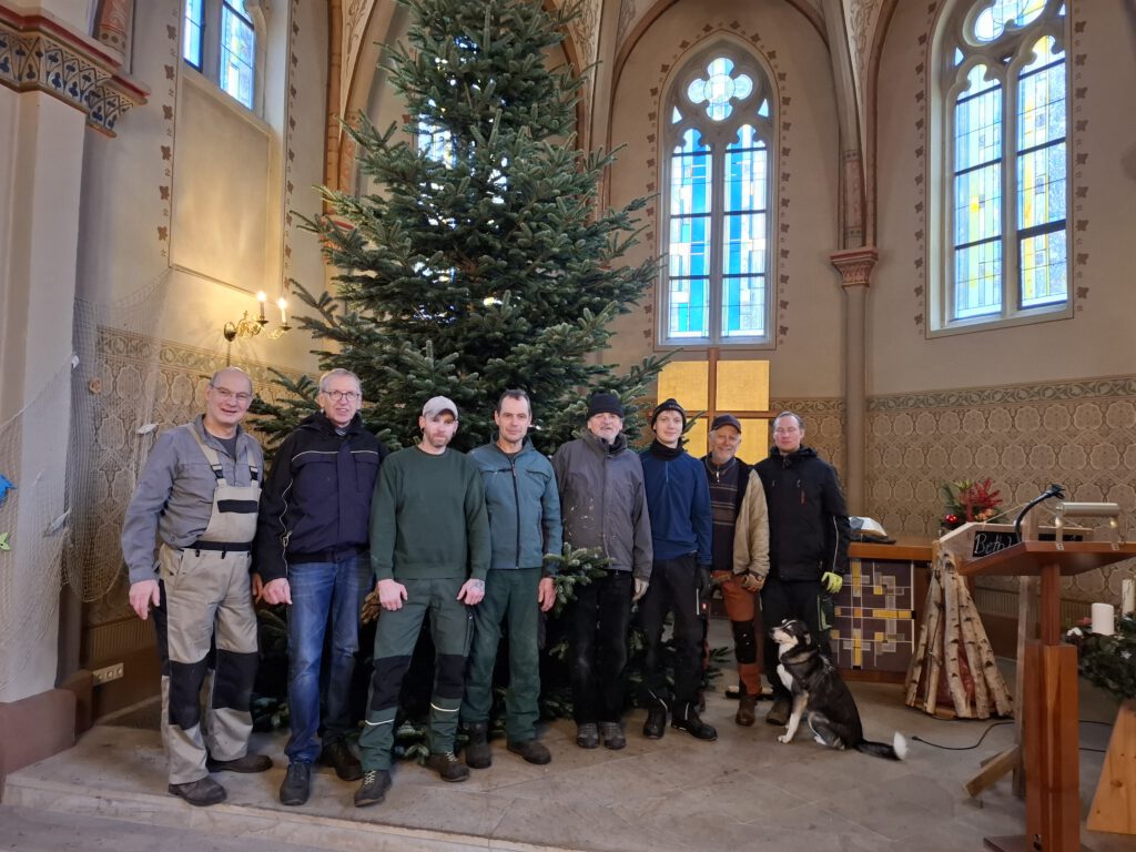 Der Weihnachtsbaum steht in der Christuskirche – vielen Dank an alle Helfer und den Spender!